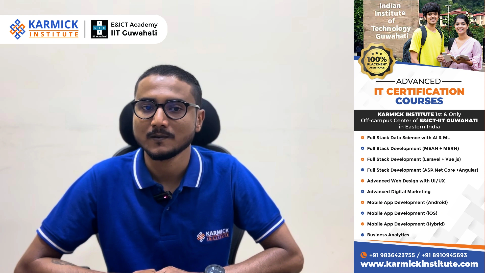 Karmick Institute is a top IT training institute in Eastern India, offering online and offline classes in collaboration with E&ICT-IIT Guwahati. We bring you a wide array of intensive, hands-on, practical, and coding-led courses to fulfill your professional aspirations. Build a strong foundation of tech education for yourself. Master what's latest in Fullstack/Backend/Automation tech with real work-ex. Crack that dream job at the best tech companies.