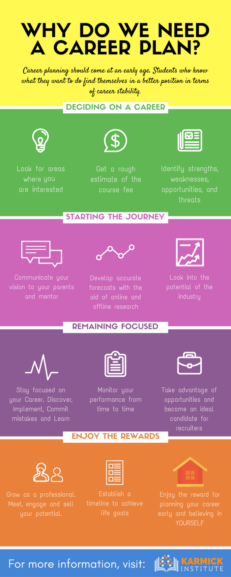 Planning for a dream career must start at an early age. Students who plan their career at an early stage end up with a stable and secured future. The objective of having a career plan is to prepare oneself for the big stage and be prepared for the involved challenges. At the same, it also makes people determined and objective defined.